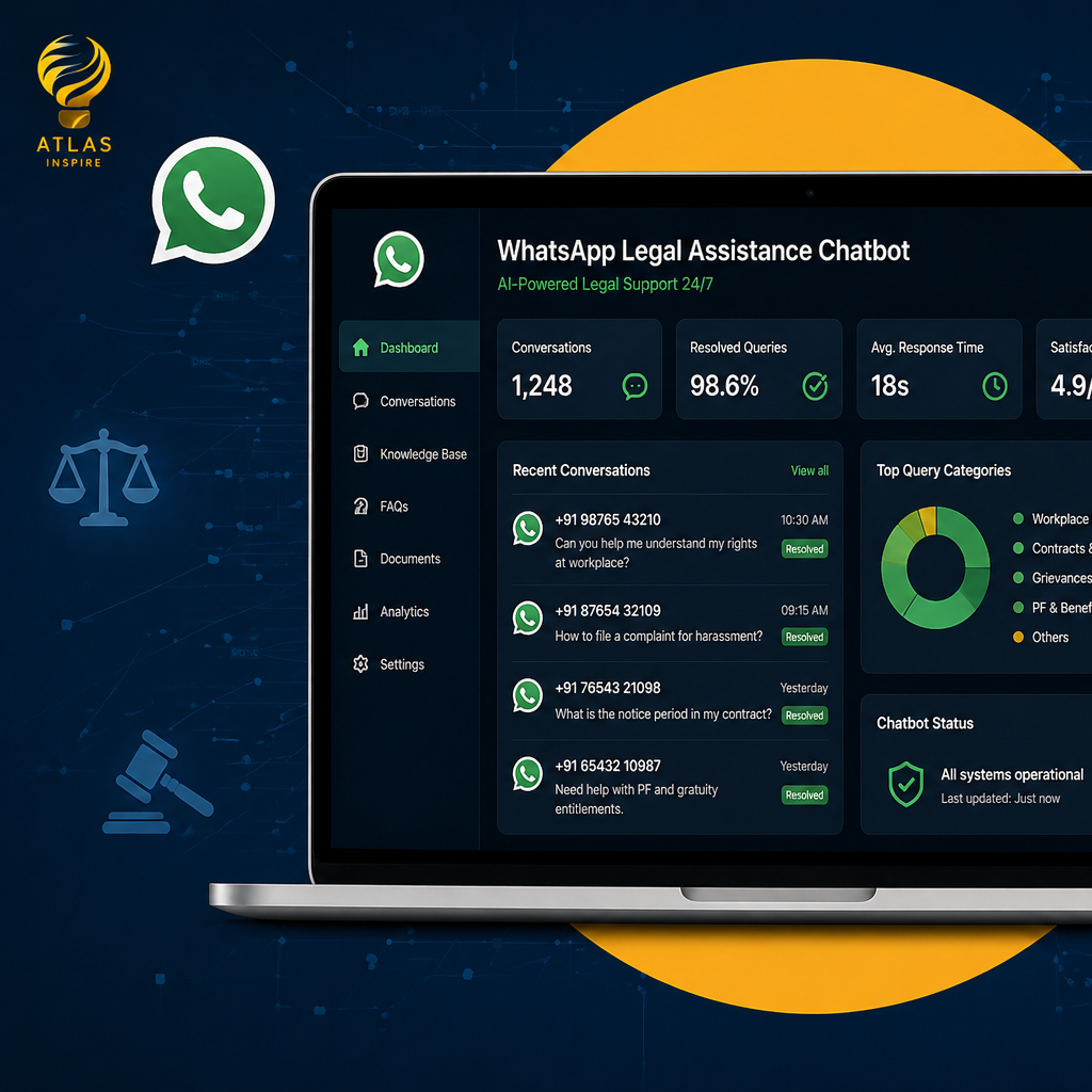 We built a RAG-powered legal assistance chatbot deployed on WhatsApp — converting the client's entire legal document library into an always-available, conversational resource accessible on any mobile phone.